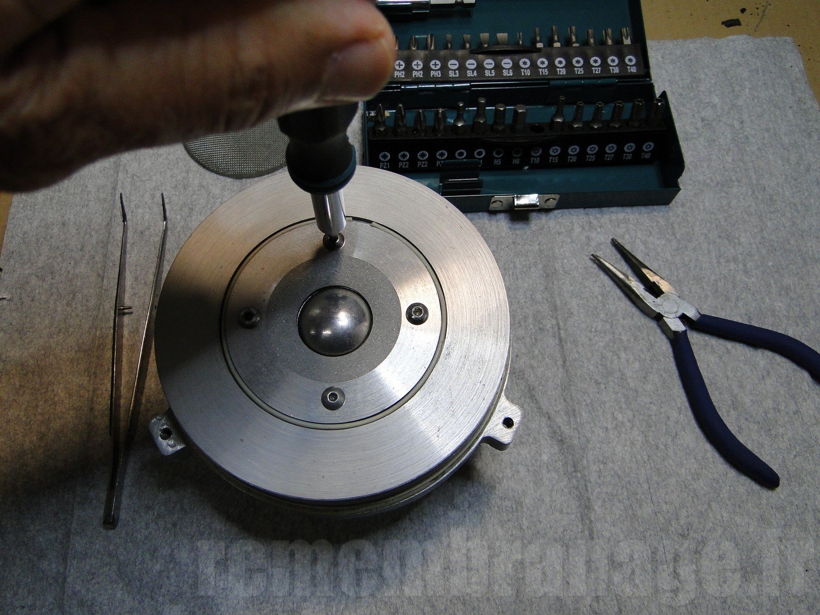 C'est une opération délicate qui demande une grande précision d'exécution car le corps du tweeter est intégré au milieu de la bobine mobile du boomer.