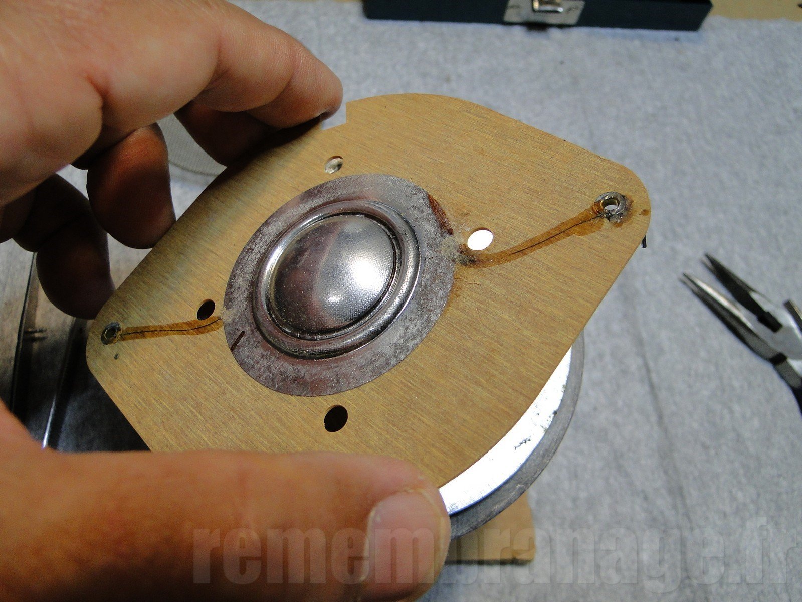 Quand le tweeter grille, il faut l'extraire du haut-parleur avant de procéder au remembranage.