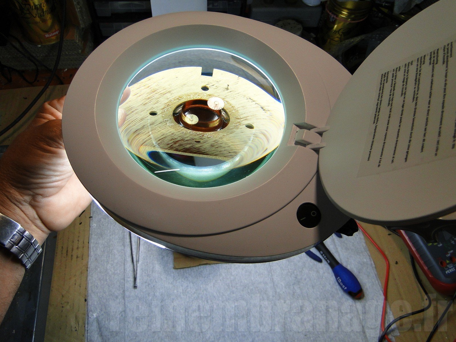 La mise en place du nouveau diaphragme se fait avec un générateur de fréquences afin de le centrer.