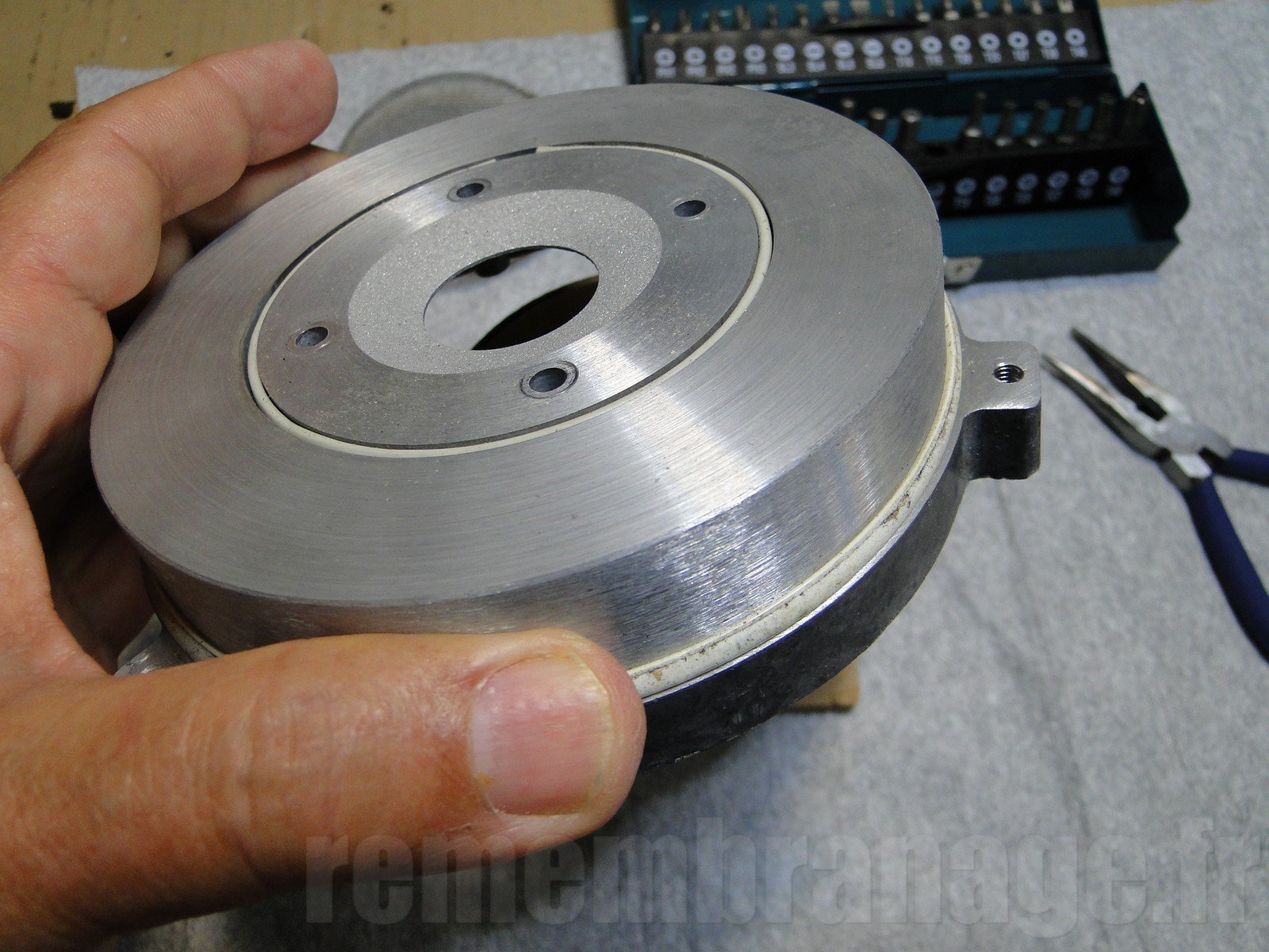La mise en place du nouveau diaphragme se fait avec un générateur de fréquences afin de le centrer.
